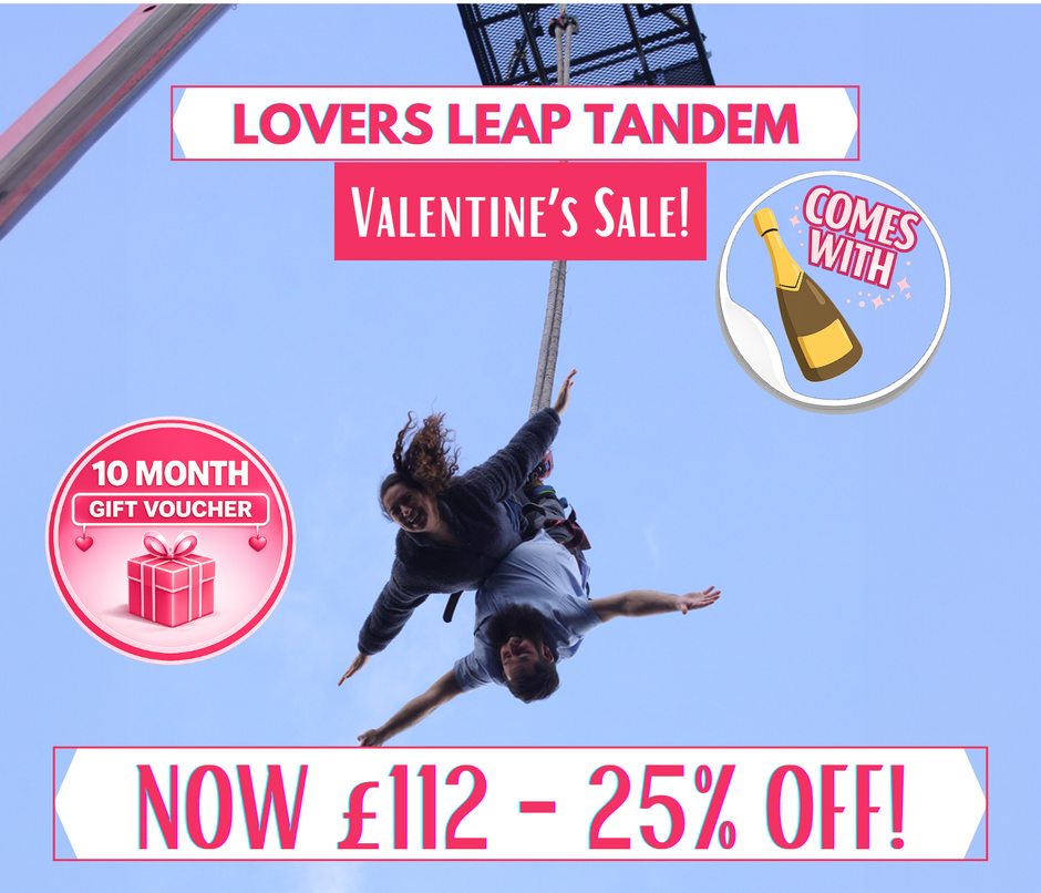 Valentine's Day Special Offer: 25% Off the Lovers’ Leap Tandem Bungee - a 160ft Tandem Bungee Jump with a bottle of bubbly at the end!