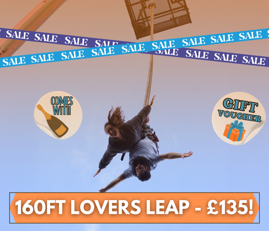 Gift Voucher Sale - Save 10% on The Lovers Leap, a 160ft Tandem Bungee Jump with a bottle of bubbly at the end!