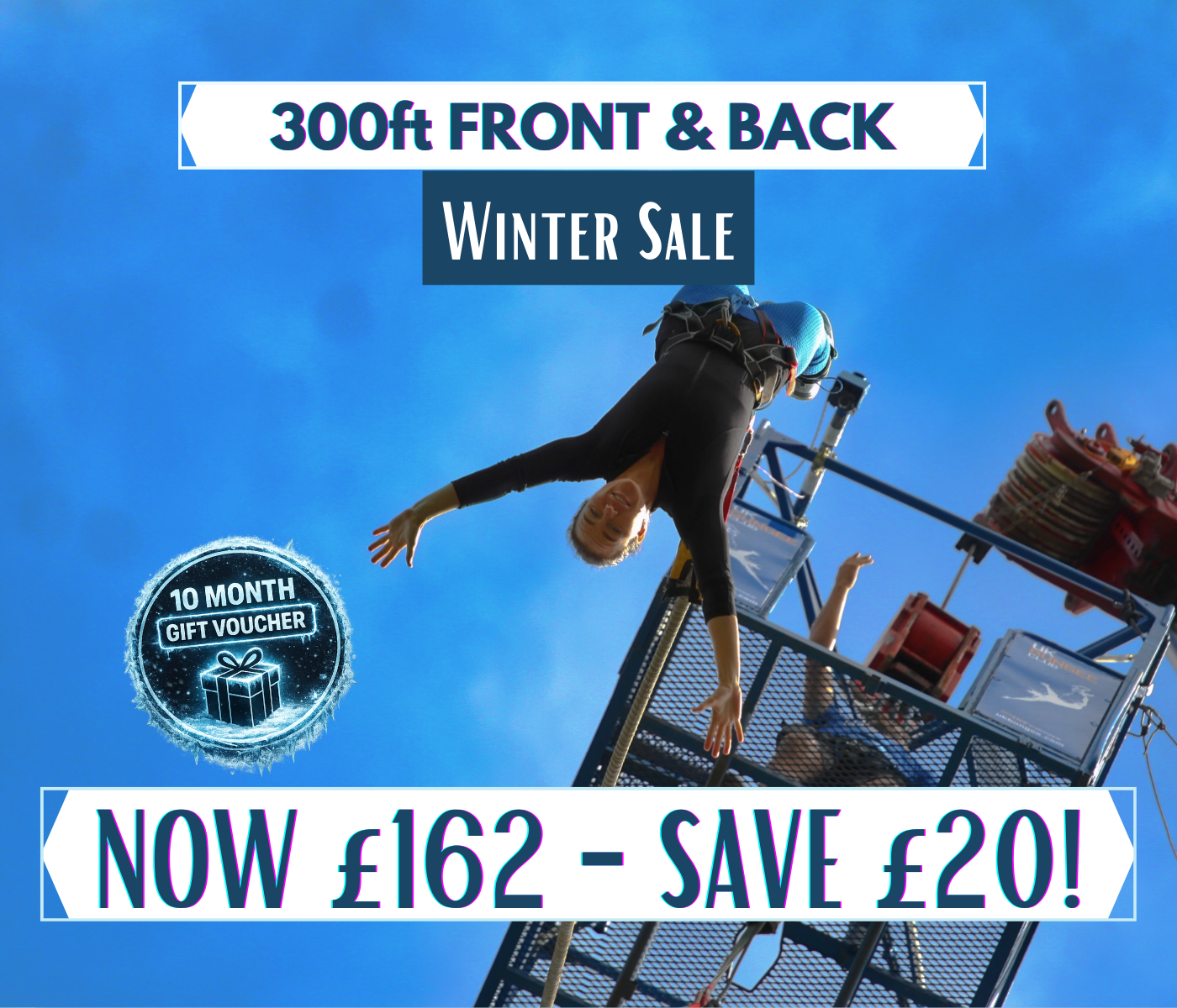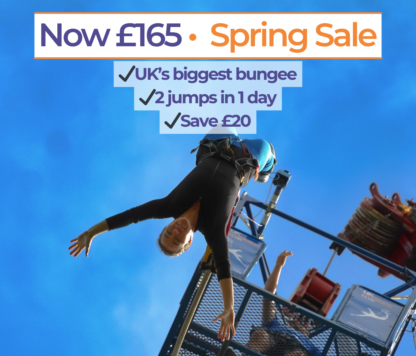 The biggest, boldest, most chaotic bungee experience in the UK just got even better. This Winter, the 300ft FAB Bungee — forward AND backwards from the UK’s highest jump — is £20 off.