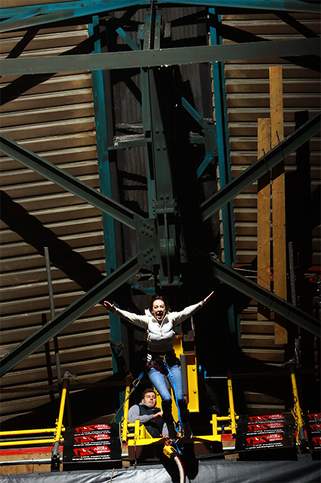 Indoor Bungee Jump - Picture the scene: You are enveloped in semi darkness, spot lights whirl around Magna’s breathtaking structure, the Face of Steel, standing at 150 feet; you start the 143 steep climb to the jump zone music pumps out of a wall of speakers, dry ice fills the air, and 7 huge video screens project images of what you are about to experience …and that’s before you’ve even taken the plunge!